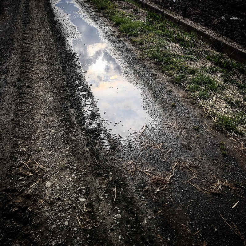 水たまりも残ってる。