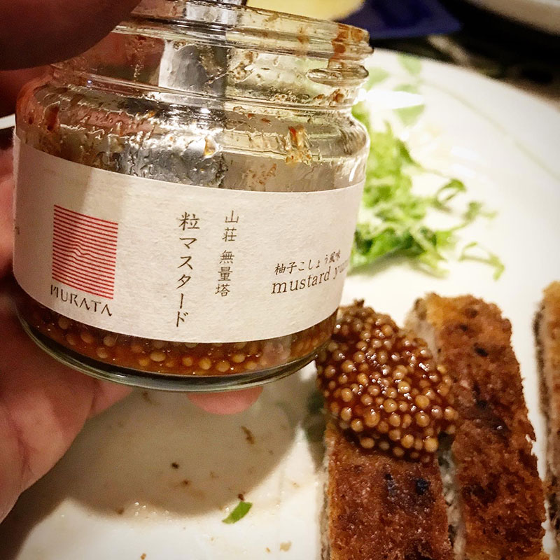 幼なじみにもらった美味しい柚子こしょう風味の甘辛い粒マスタードとバルサミコ酢で。