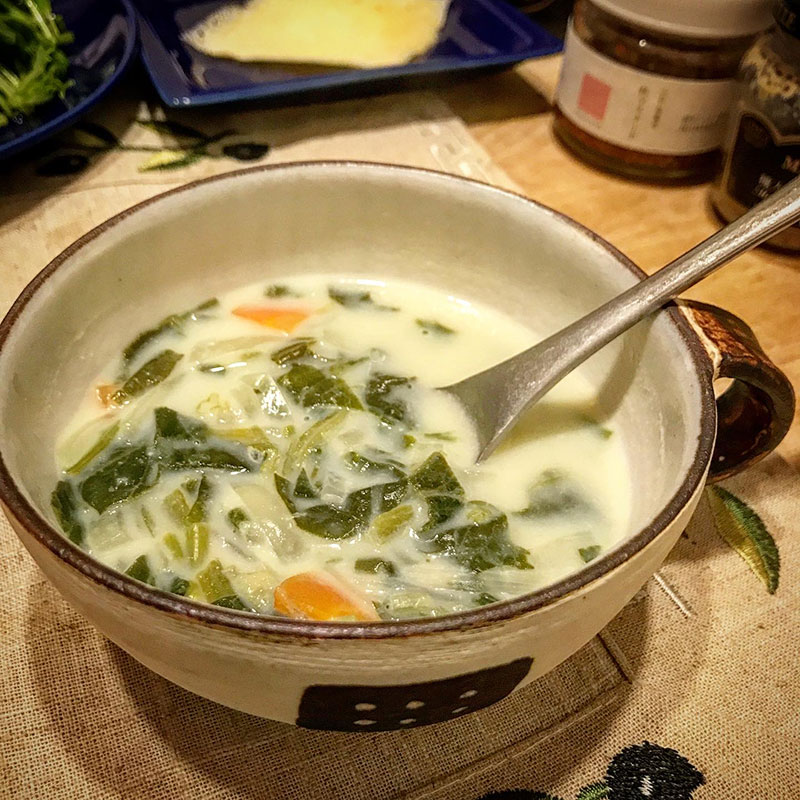 早朝、近所の方にいただいた採りたてのほうれん草のサラダ。ベーコンの入った熱々のドレッシングかけて。葉がギザギザになって無い。品種なのか育て方なのかこの時期のほうれん草なのに柔らかいこと、柔らかいこと。美味しい!