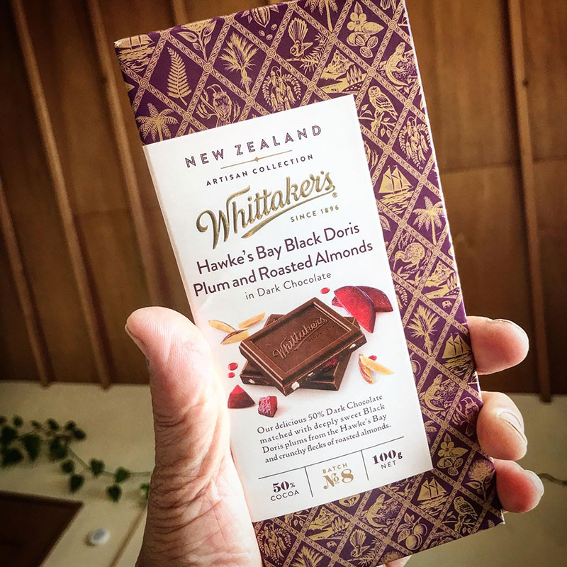 姪っ子のニュージーランド土産のウィッタカーズのチョコレート。ブラック・ドリス・プラムとローストしたアーモンドが入ってる。