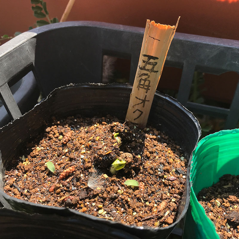 互角オクラが発芽。
