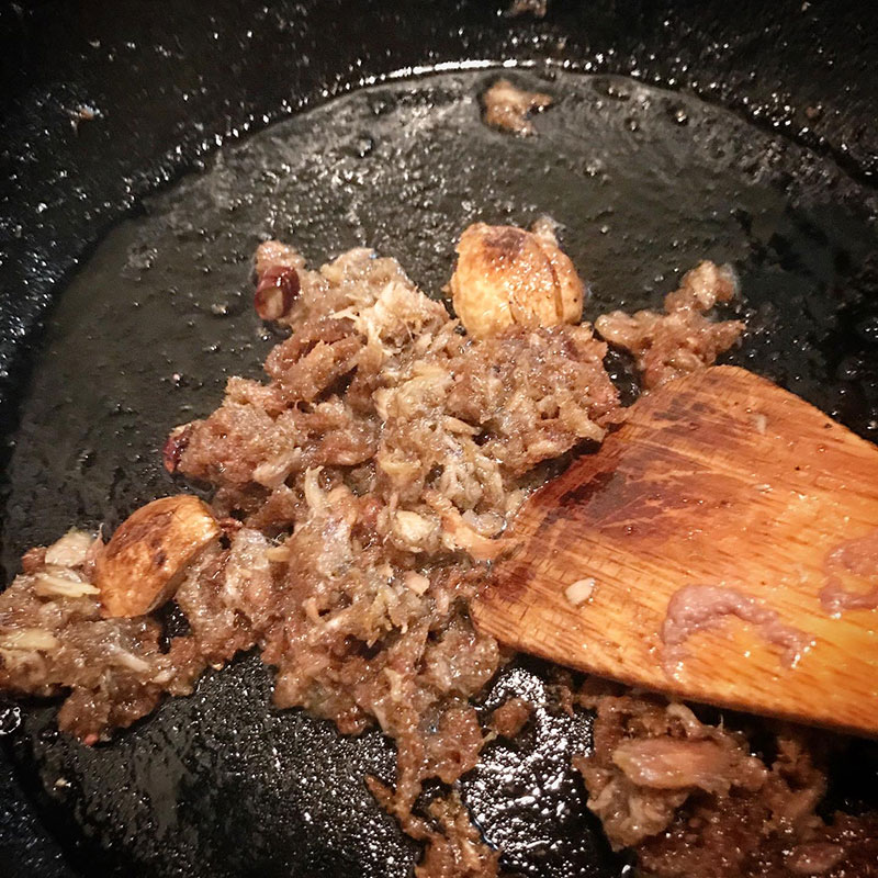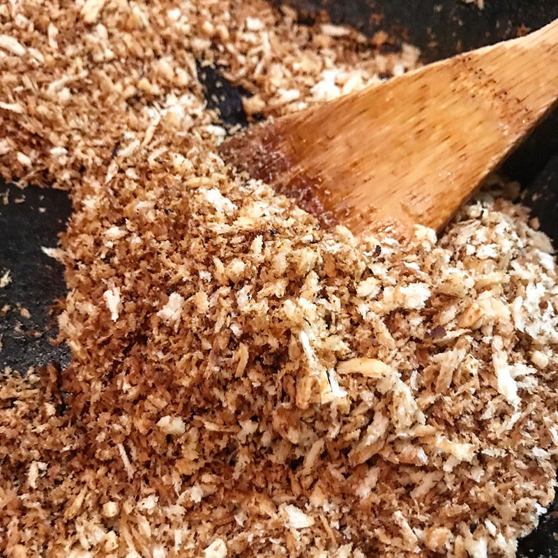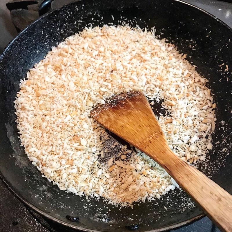 カリカリに炒めて香りを移してニンニクパン粉作っておく。
