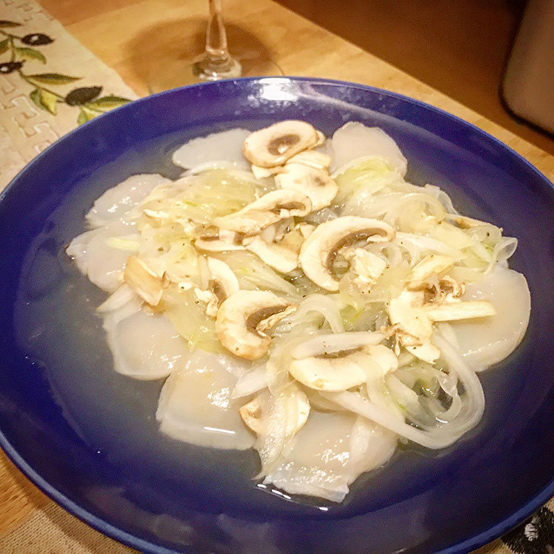 カミさんが作ってくれたホタテとマッシュルームのカルパッチョにかけても美味しいし