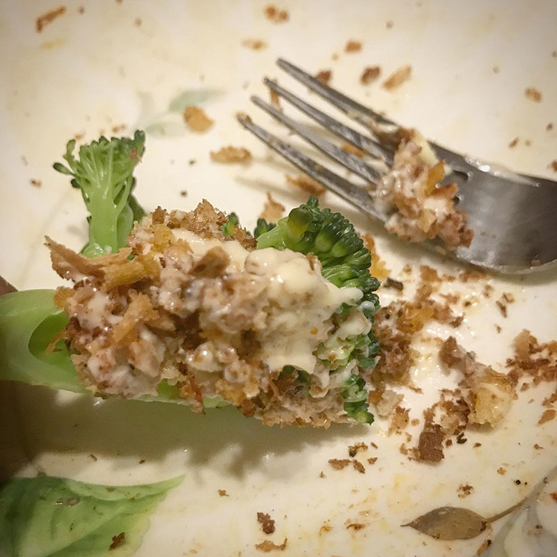 茹でたブロッコリーとマヨネーズにかけても美味しい。パン粉余ったら捨てずにこれ作るの超おすすめ。