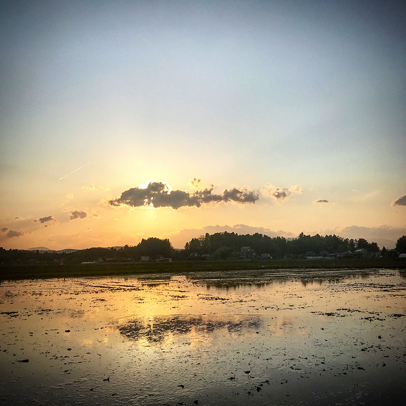 今日の田んぼの夕陽。