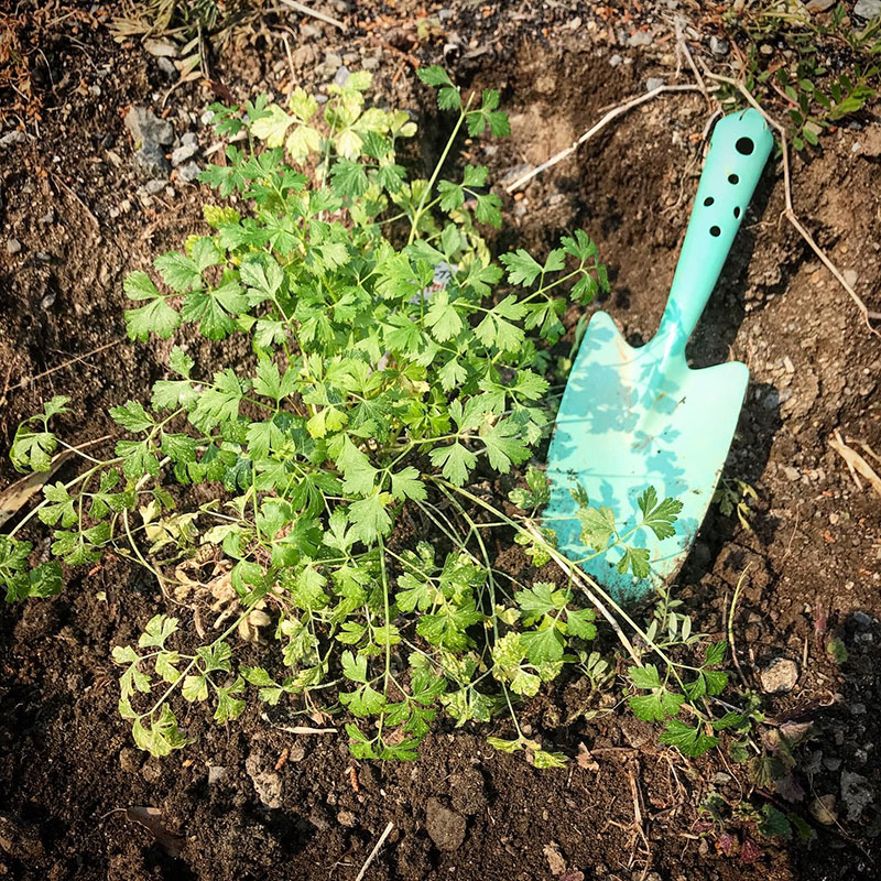 冬の間、畑から鉢に移して居間で枯れずに食卓を彩ってくれたイタリアンパセリを