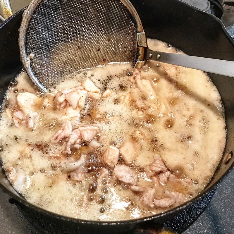 いつもは焼くだけなんだけど今日は時間があったので肉に下味つけて片栗粉つけて油通しした。