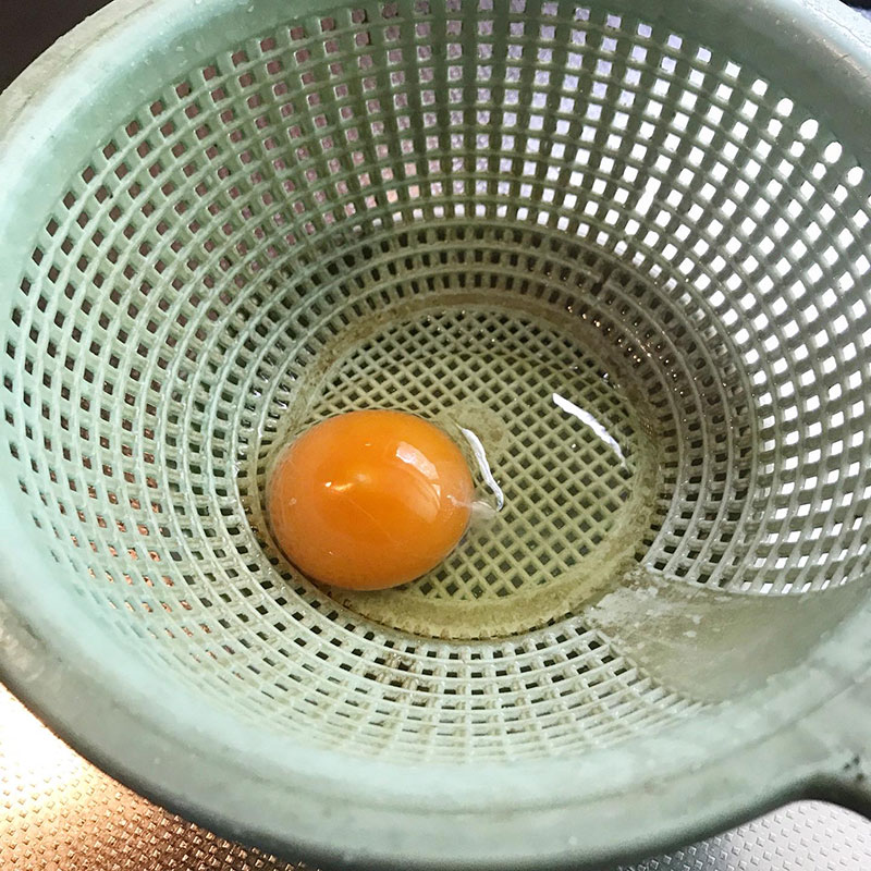 ザルで水溶性卵白を濾すと