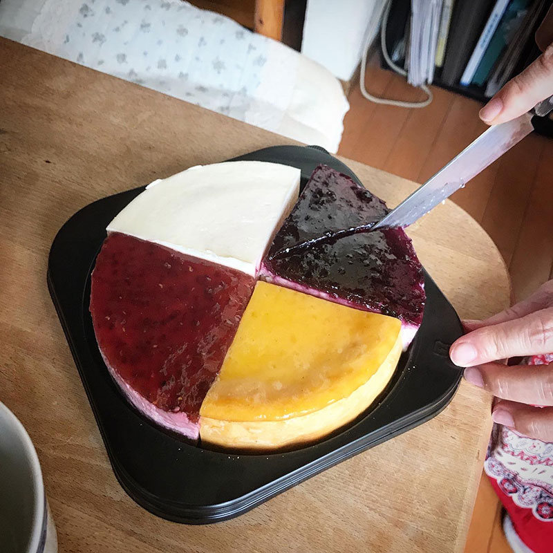 カミさんが母の日に東京の母親にスイーツ・ストーリーのクアトロチーズケーキ贈ってくれたんだけど行き違いがあって我が家に届いてしまった。直ぐに東京に別便を発送していただいたので、これは僕らが美味しくいただきます。まさか食べられると思わなかった。
