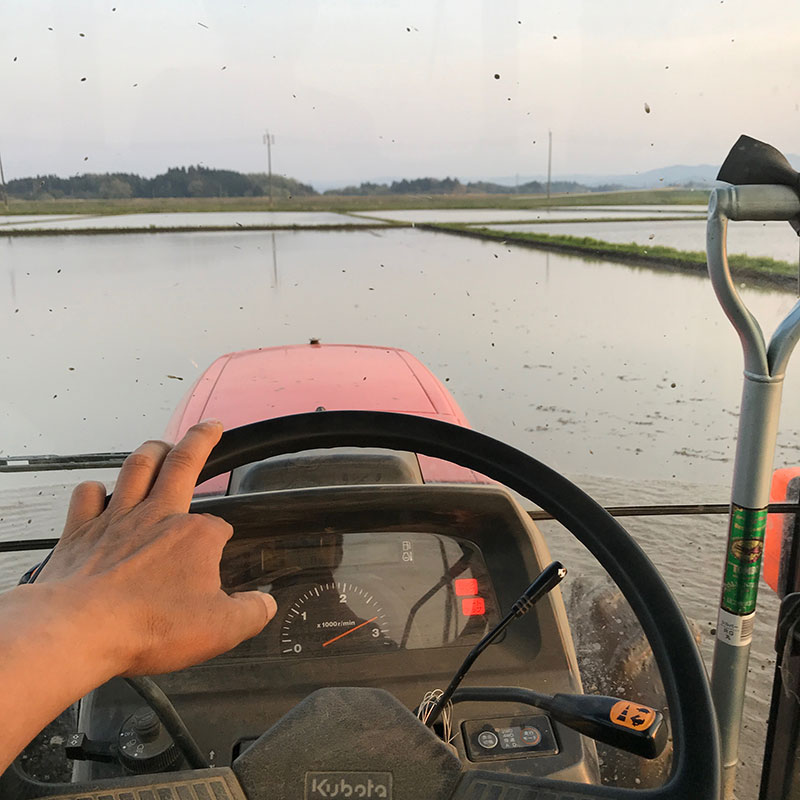 朝から晩までトラクターに乗って代掻き。