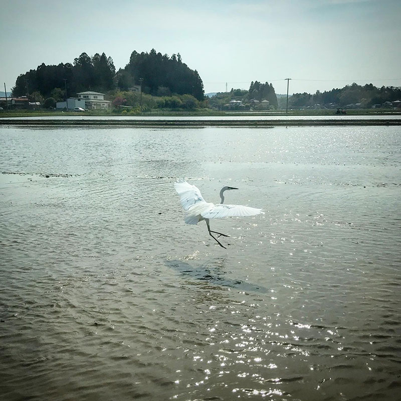 田おこしして出てくるミミズや虫を食べたくて急接近。