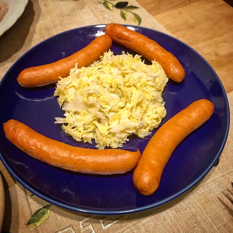 カミさんがソーセージにザワークラウトもどきを付け合わせて。いただいたスーパードライ。2杯目は赤い金麦。