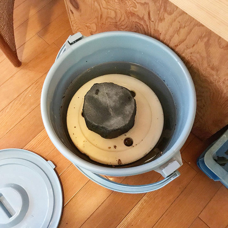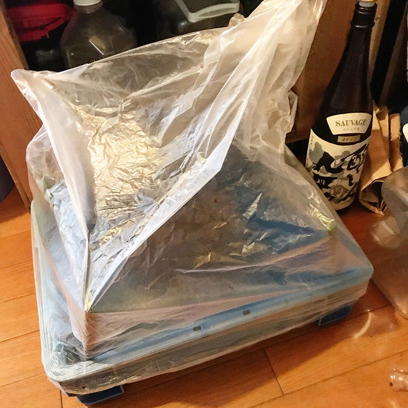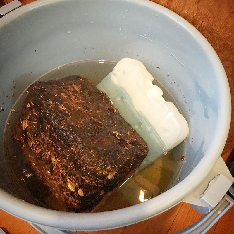 3回目の収穫に向けて蓄冷剤を入れた冷たい水に