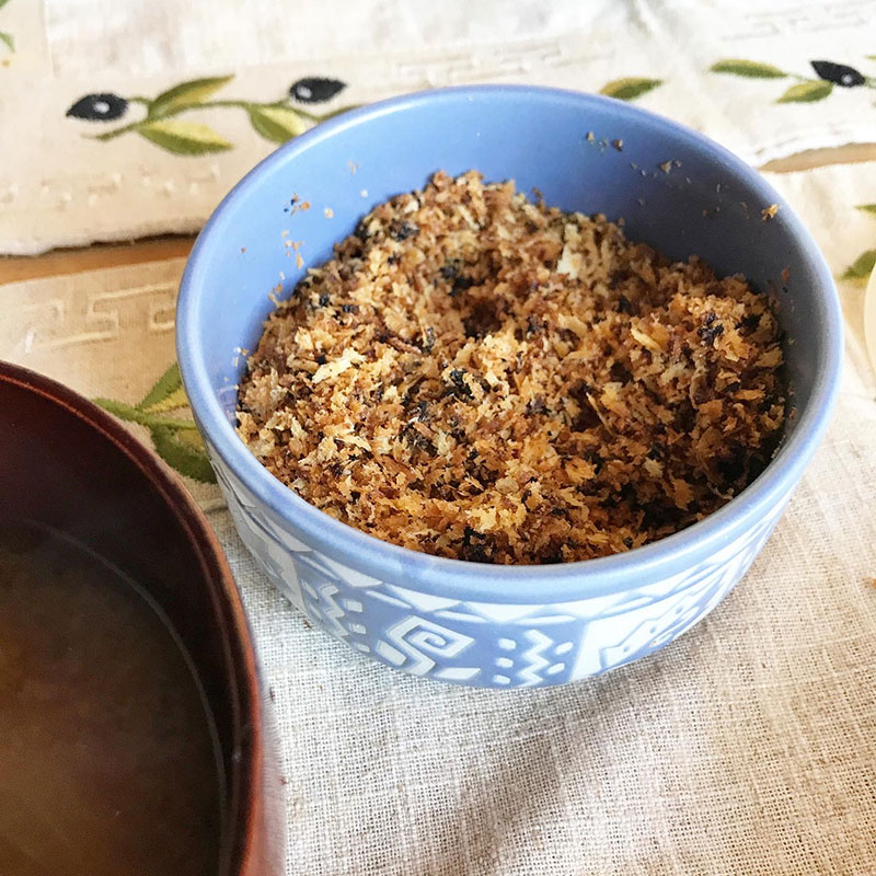 北イタリアの家庭の定番、ニンニクパン粉たくさん作って常備してるのでそれもたっぷりかける。