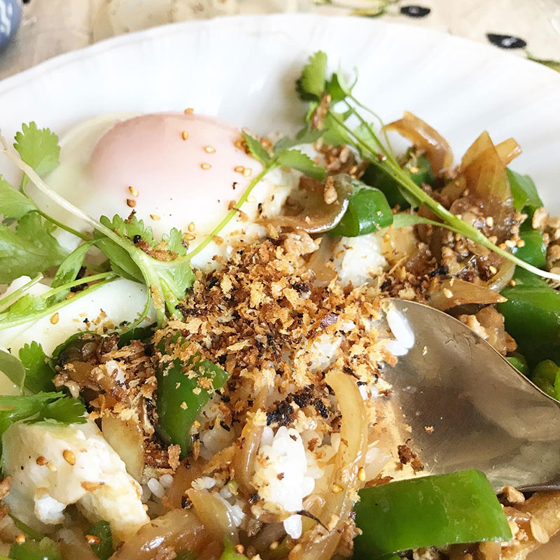 サクサク食感がガパオライスにもすごく合う。美味しい!