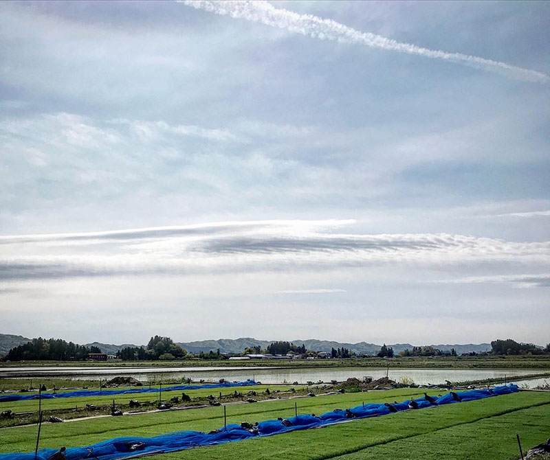 田植えを待つ稲の上に広がる空。