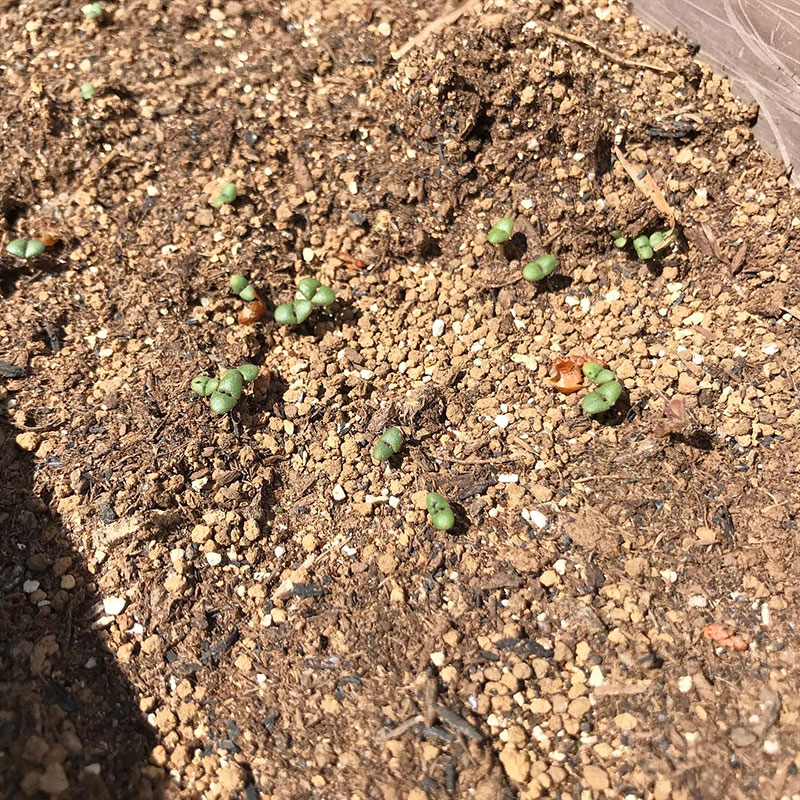 鉢にまいたパクチー発芽。