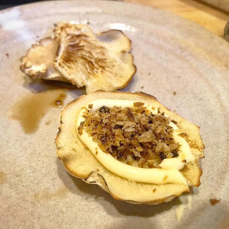 菌床しいたけを焼いたものにマヨネーズ、醤油した上からニンニクパン粉。何でも美味しくしてくれるねぇ。