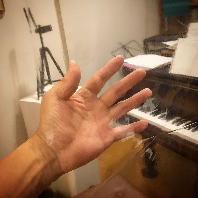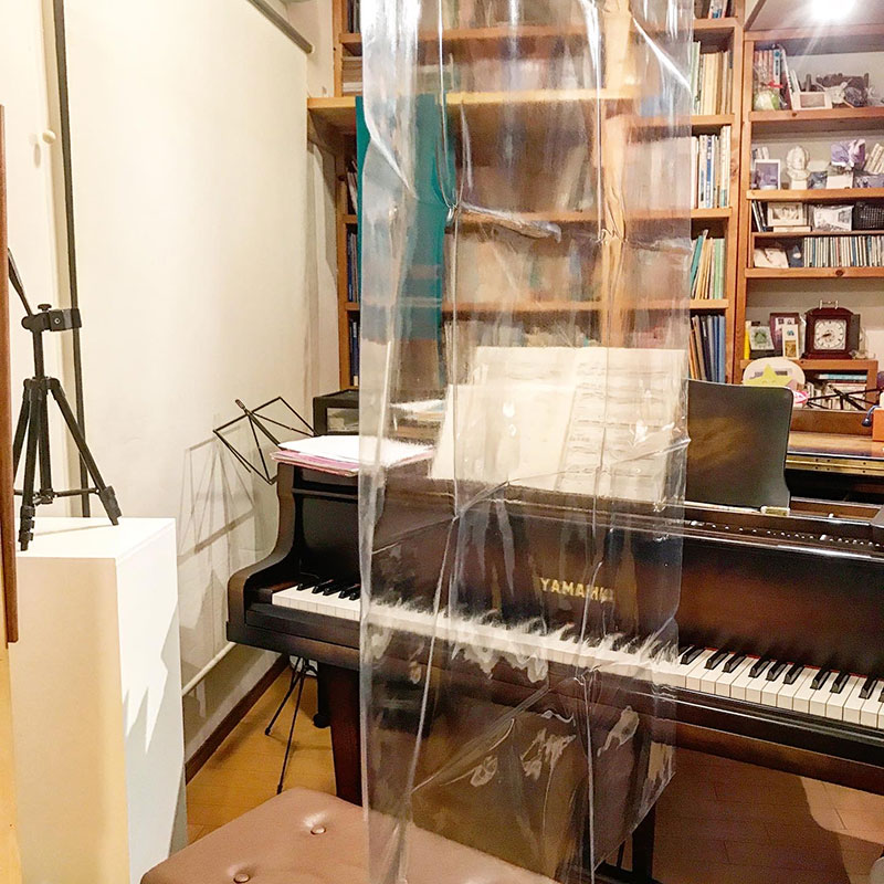 てか、ビニールが透明過ぎて、ただピアノ室を写してる様にしか見えない。施工、結構神経使って大変だったのに。