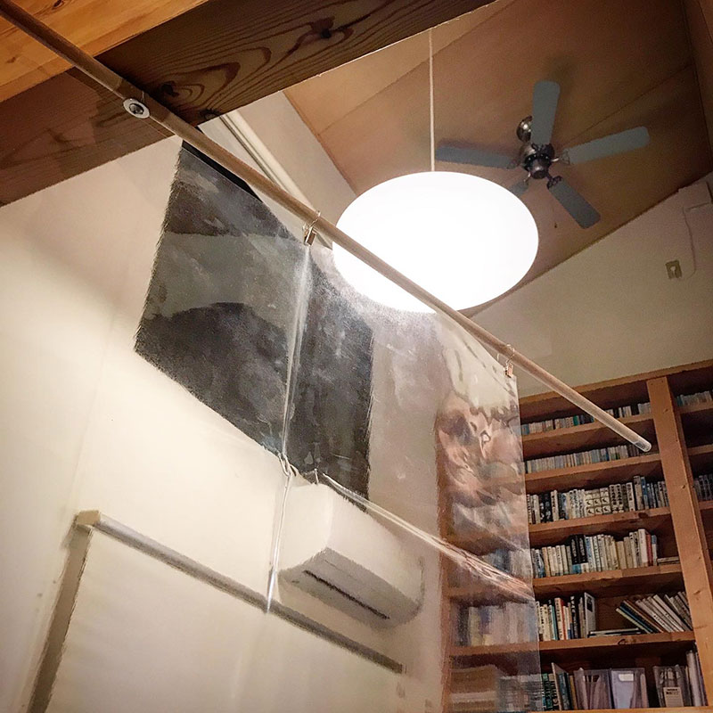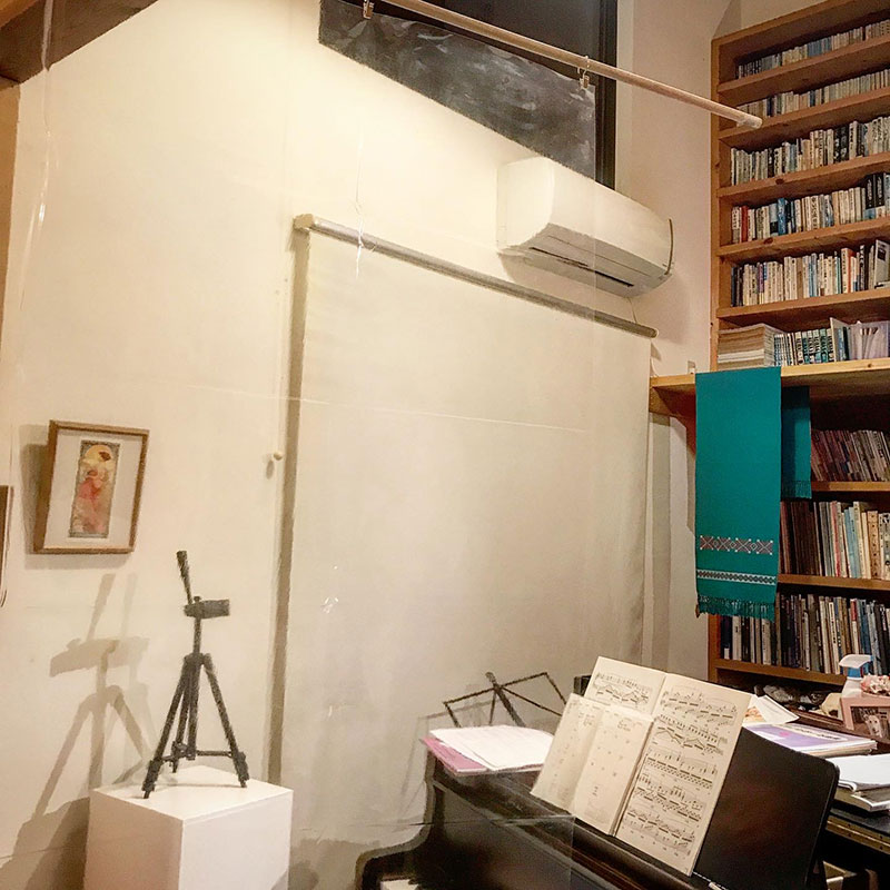 対面でのレッスン再開に向けエチケットシートとして透明なカーテンを設置した。