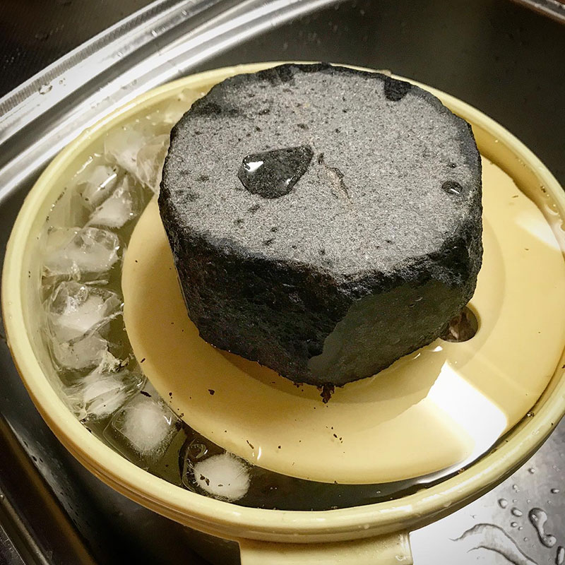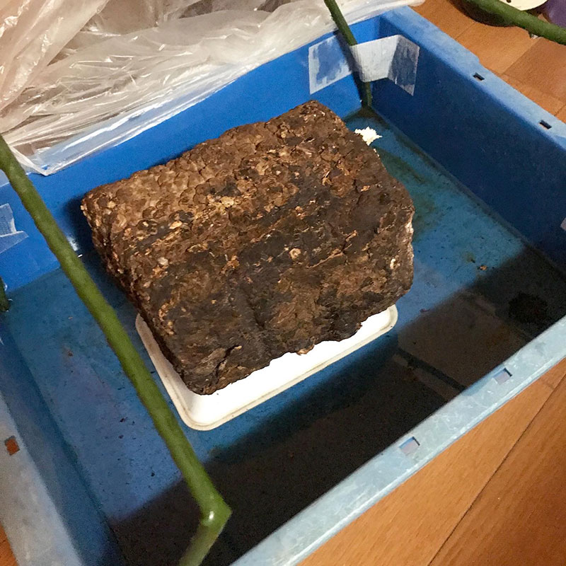 2回目の収穫に向けて一晩浸水させておいた菌床を