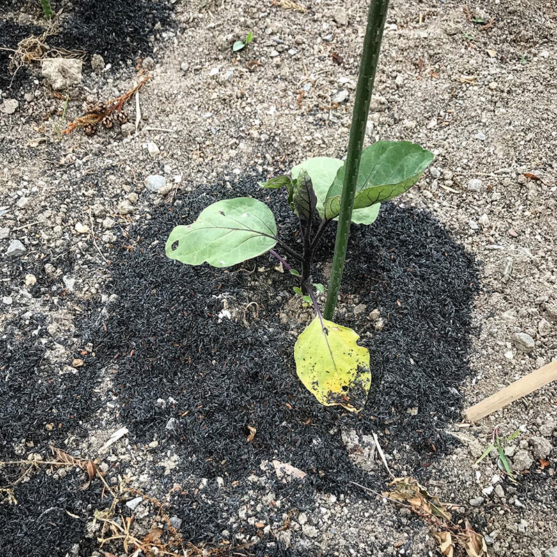 ビニールで黒マルチはやりたく無いので地温上がる様にくん炭撒いておく。