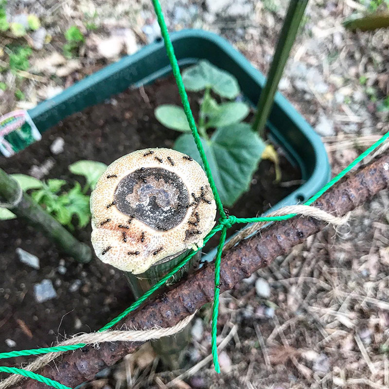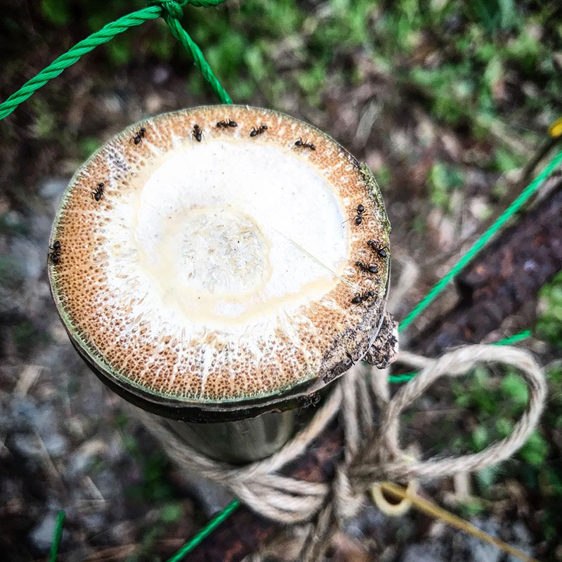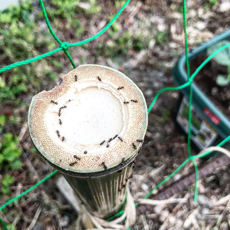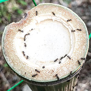 その竹を輪切りにした節のところに蟻が群がってる。