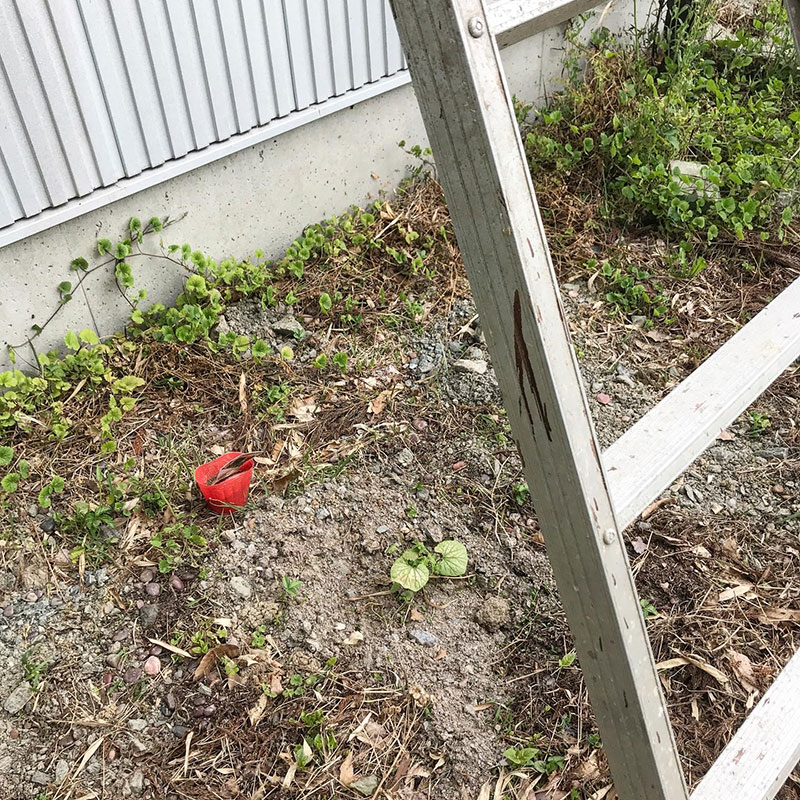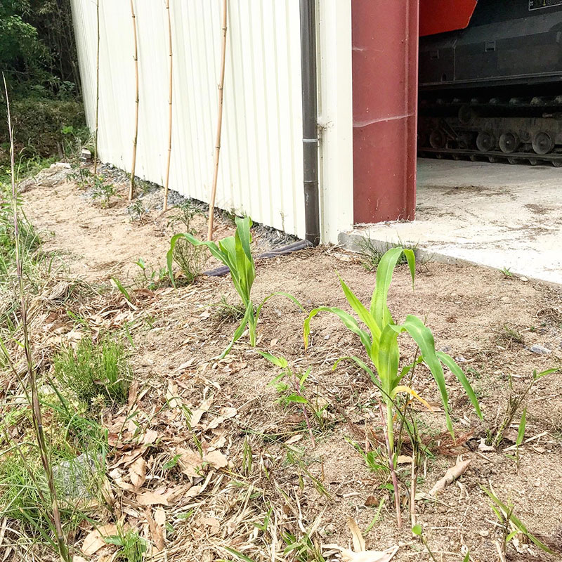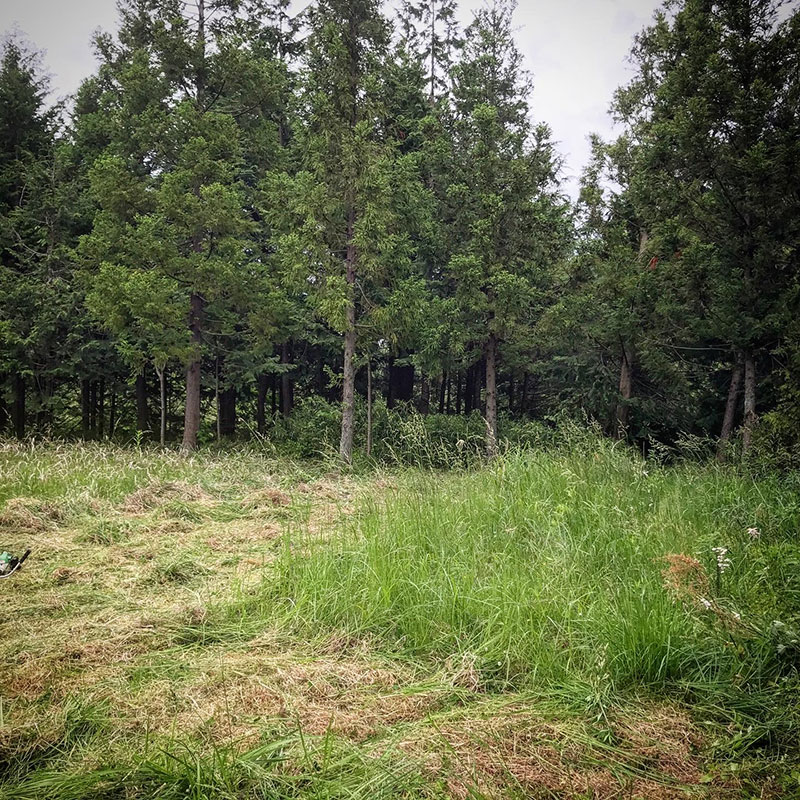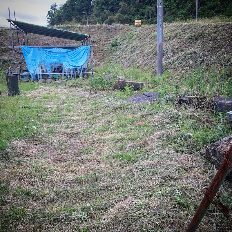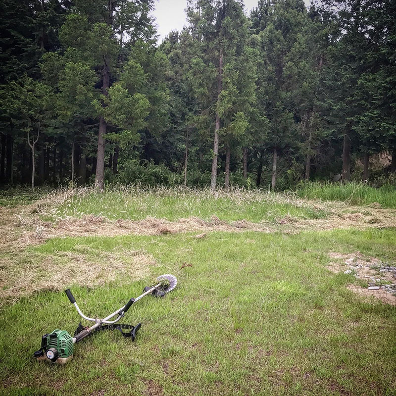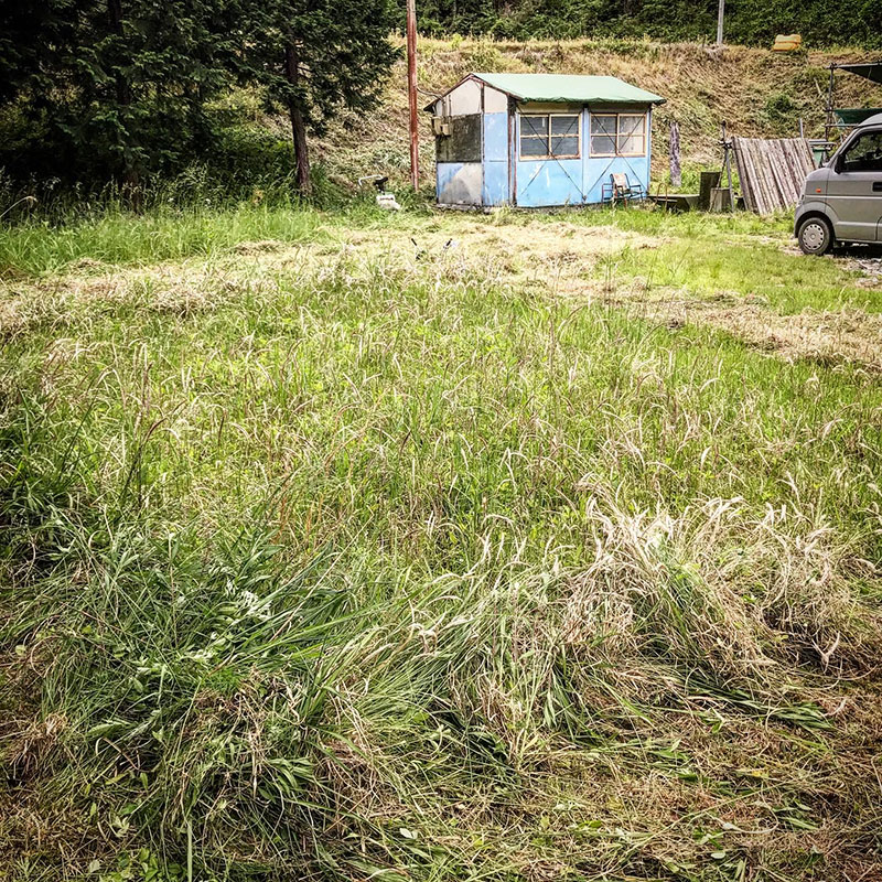 昨日に続いて仕事場の草刈り。何か所か四角く刈り残した。