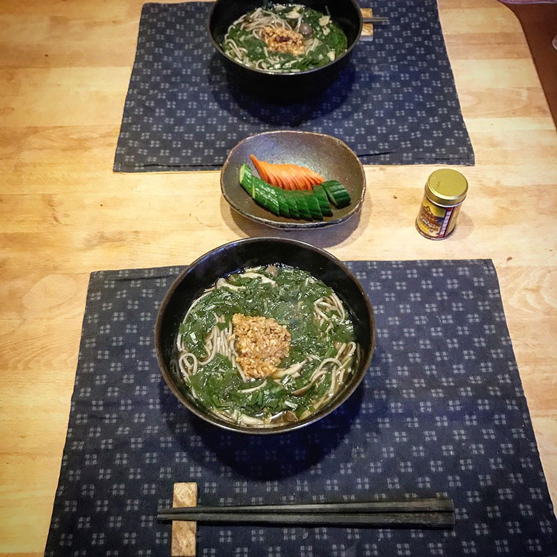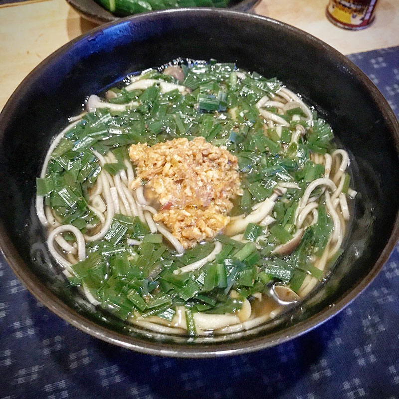 畑のニラでニラ蕎麦作った。水出しした昆布に4種の削り節で出汁をとって作り置きのかえしと合わせて。