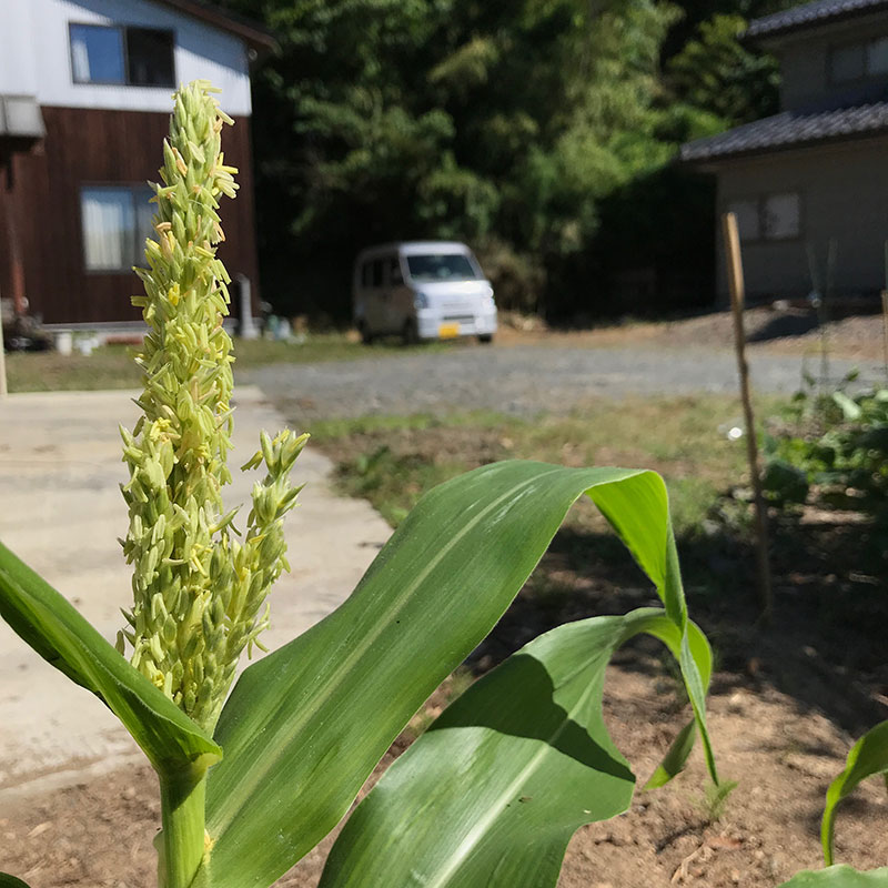 とうもろこし。全然背を伸ばさないまま花が咲いてしまった。。。