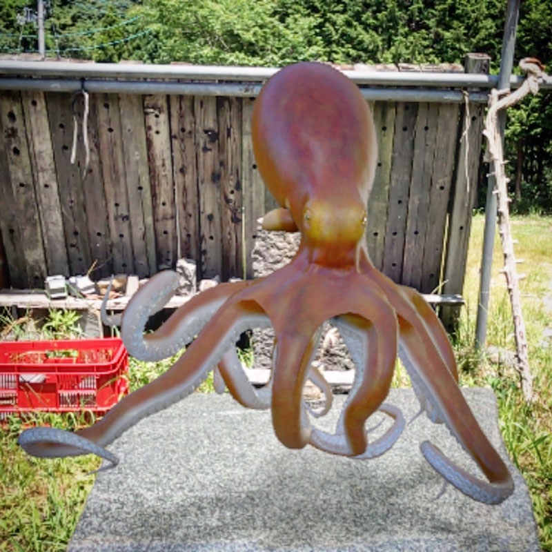仕事場の石テーブルの上にタコ。(ウソです。GoogleのARです)