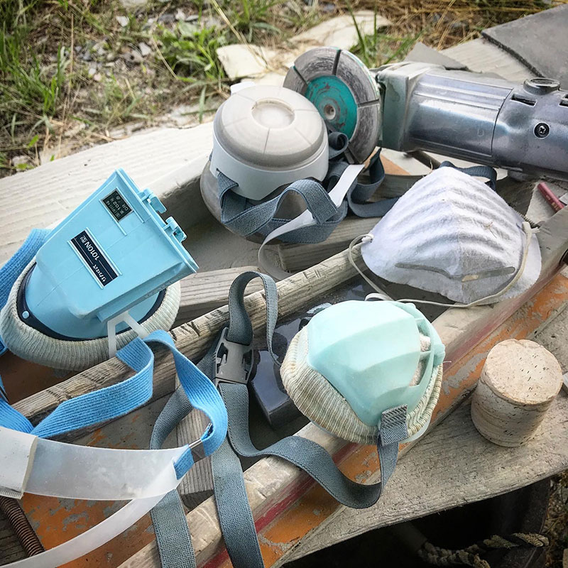いつもの様にゴーグルに耳栓、そして防塵マスクをして石を彫って口の周りが汗だらけになりながらふと、暑さの中で何時間もマスクをする辛さを今、世界中の人と共有してるんだなぁと思って不思議な気持ちになった。