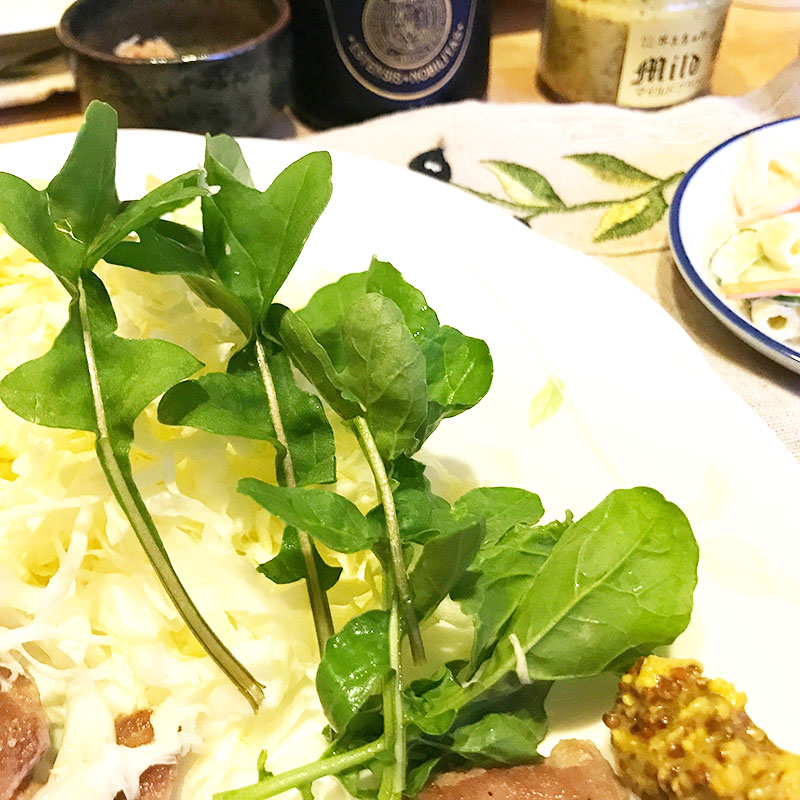 #庭の猫の額畑のルッコラ。