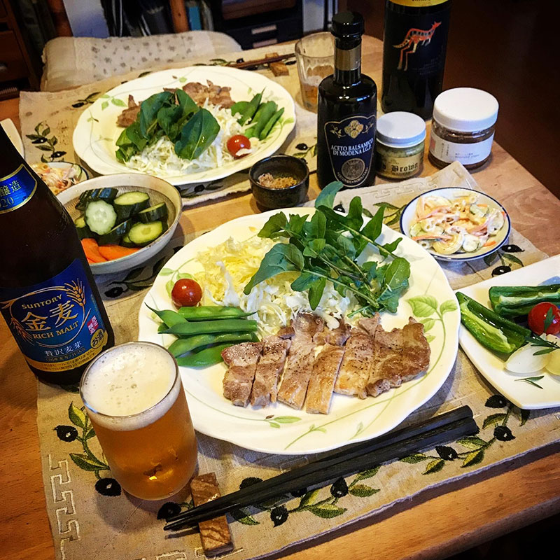 肉に友達にもらった美味しい美味しいバルサミコ酢で味変。
