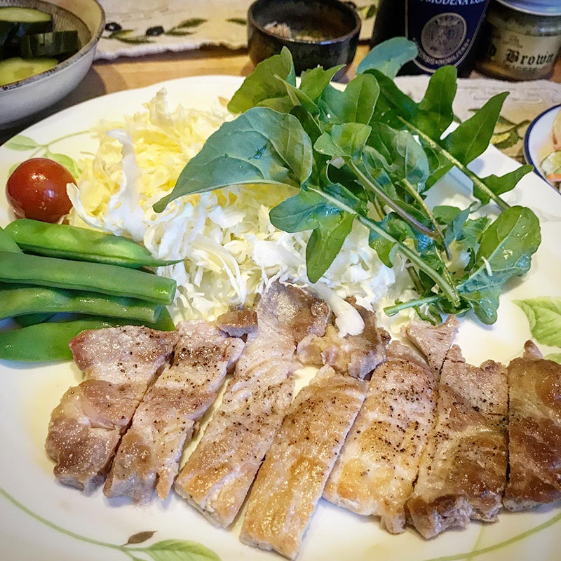 居酒屋我家、開店。カミさんがポークソテー焼いてくれた。