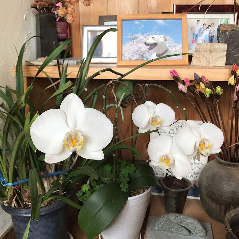 カミさんがコンサートの折にいただいた胡蝶蘭。3年目。大きな花をつけてくれてる。しかもずいぶん長く。