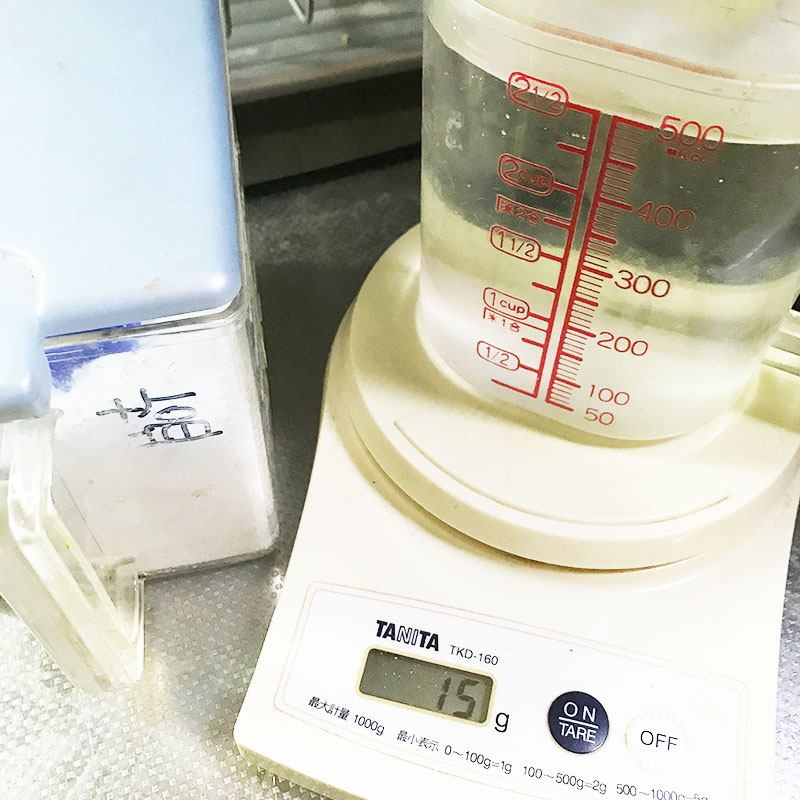 500mlの水に15gの塩で3%の塩水を作って