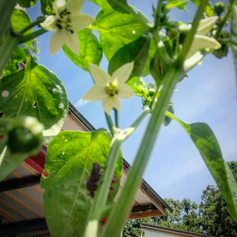 ピーマンの花。(ピンボケごめんなさい)