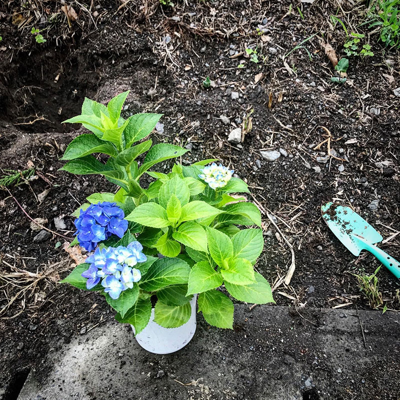 家を紫陽花でいっぱいにしようと去年、山からいただいてきた数本の枝を手をかけて育てて土手に移植したけど全部枯れてしまった。