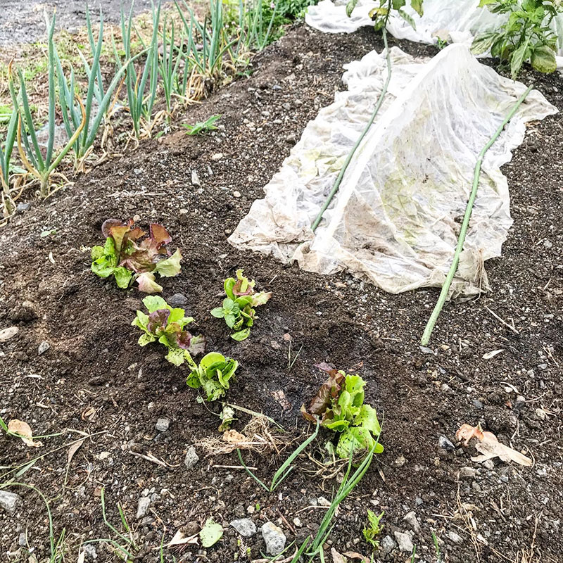 庭の畑のベビーリーフとルッコラ、