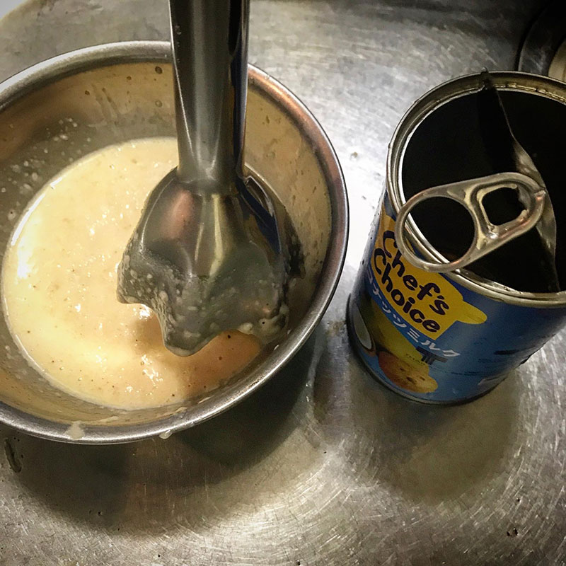 ハンドプレンダーでペースト状に。ブレンダー手軽で便利。