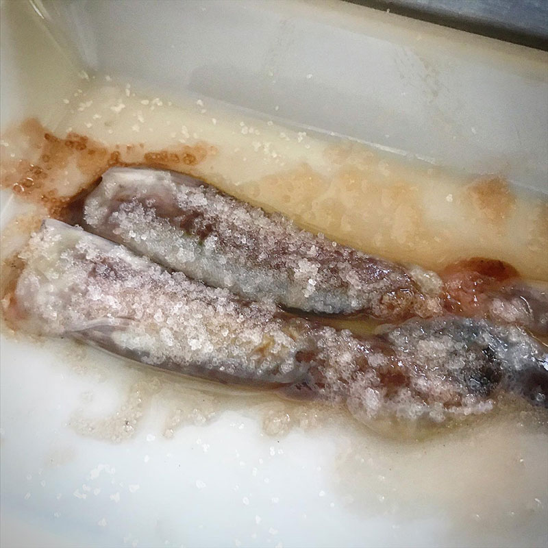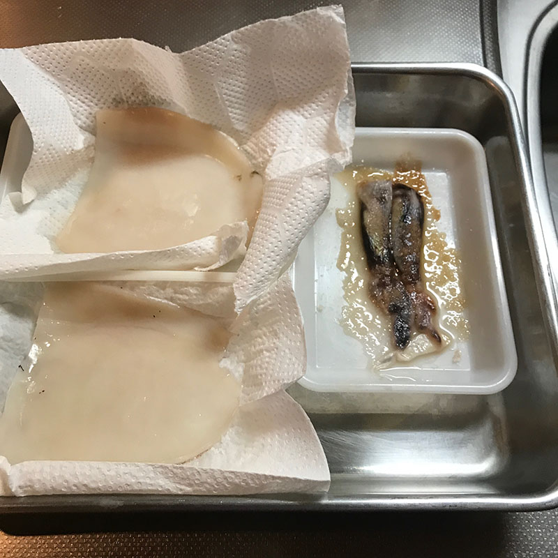 昔、よく作っていた塩辛。アニキサスの問題になって怖くなって作るのやめたんだけど美味しい塩辛いただいてまた食べたくなってしまって一杯百円だったので買ってきて久しぶりに作った。二日間冷凍してアニキサスの問題解消したらいただきます。