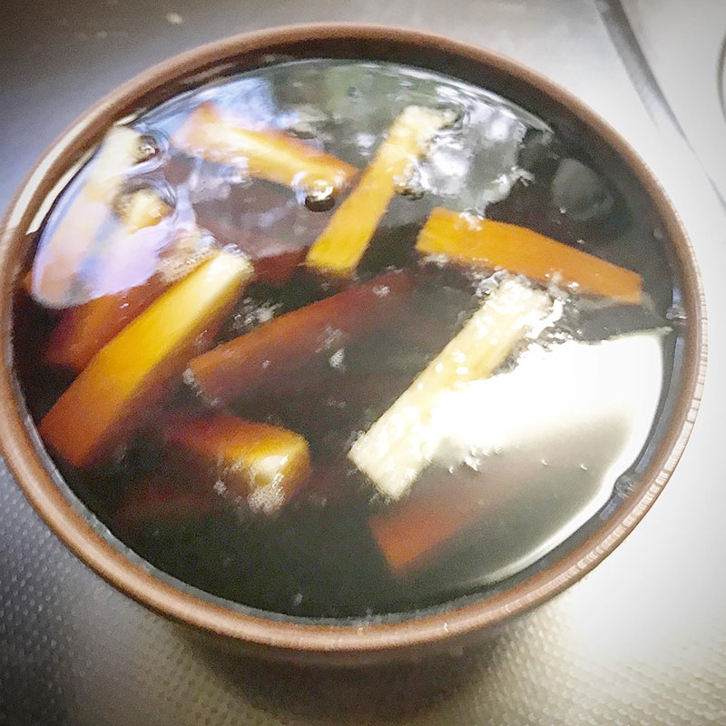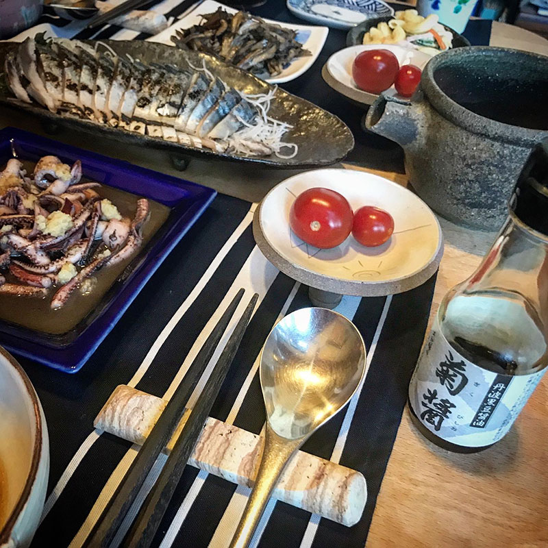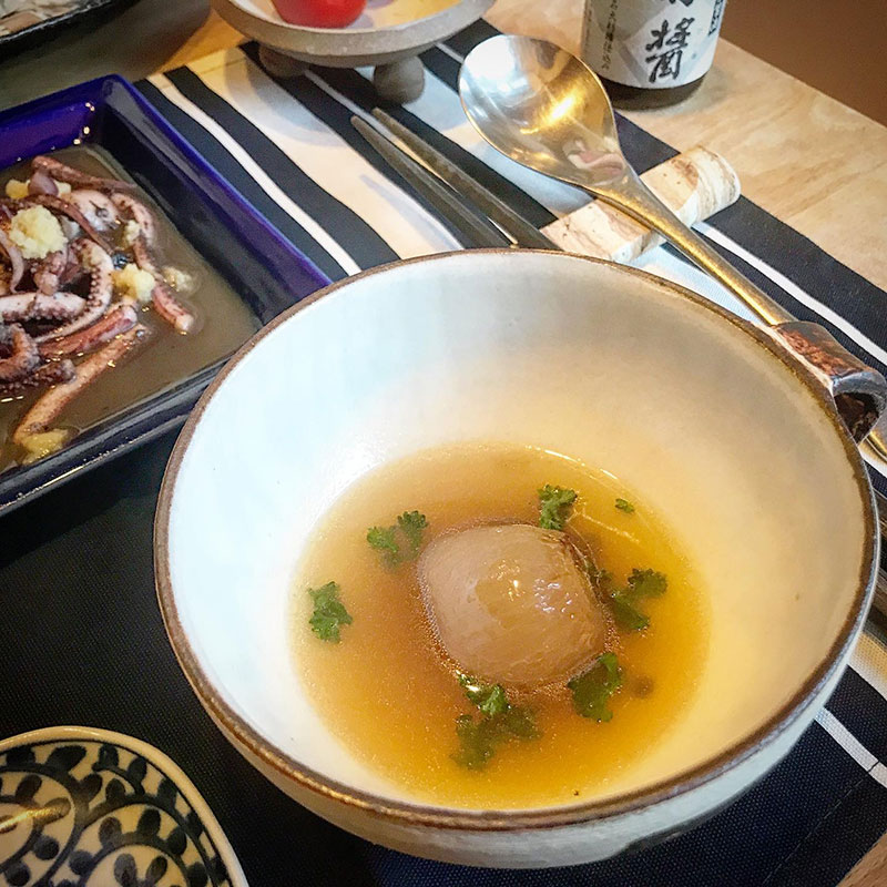 イカ墨の袋そっと外して日本酒にイカ墨溶いて蒸し焼きにした。イカ墨は旨味がすごいね。