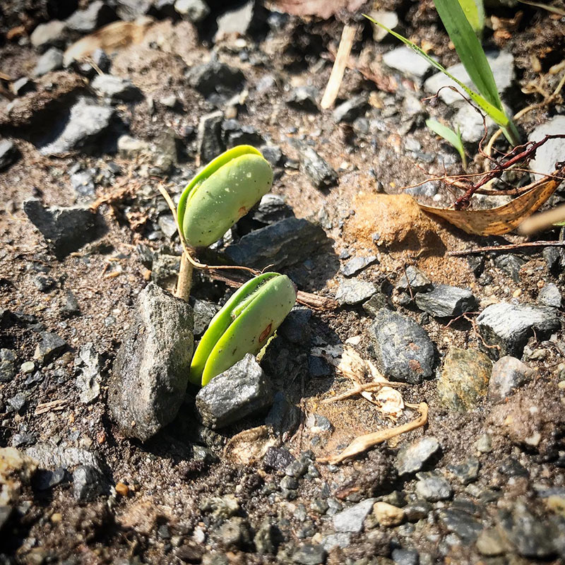 6月になってからまいた秘伝豆も発芽した。