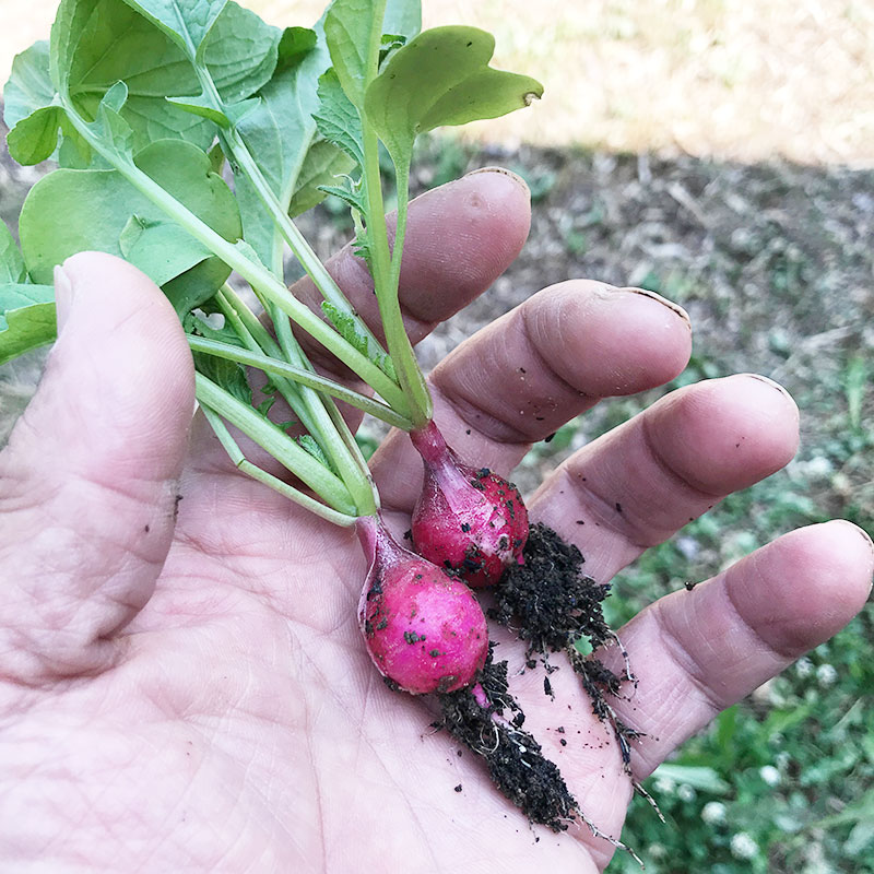間引いたラディッシュ、カミさんとつまみ食い。