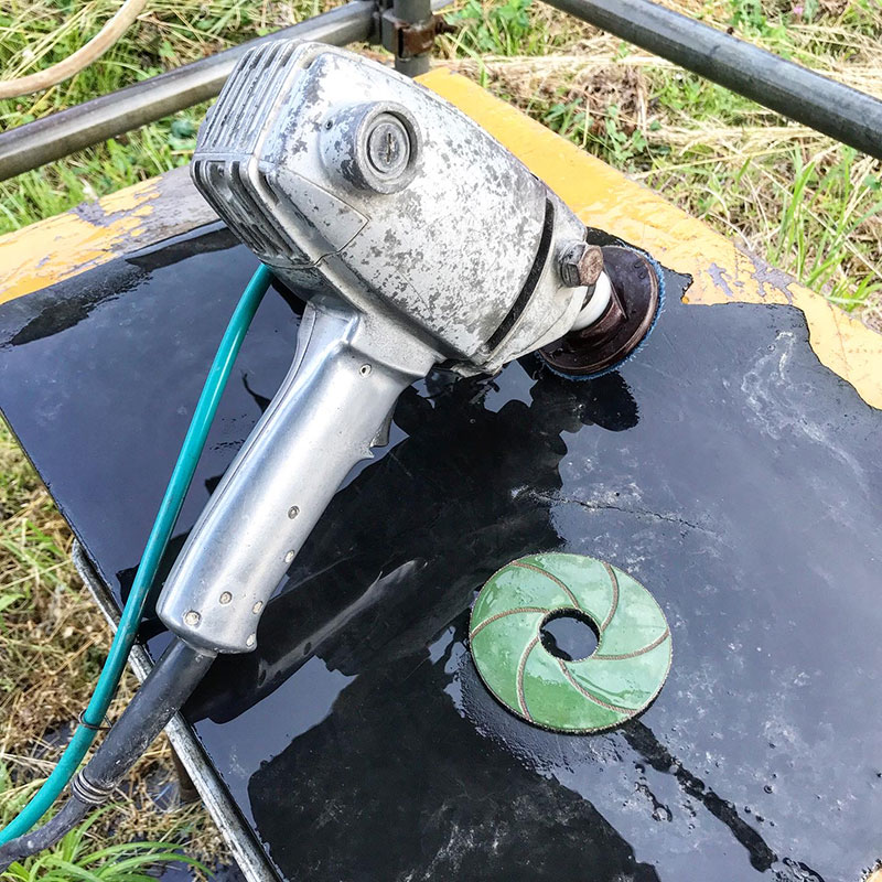 久しぶりの磨き仕事でした。石磨きには好都合な暑さ。石にかなり特殊な加工をして、そんな事やってる人や作品見た事ないのでひとりであれこれ試行錯誤してました。