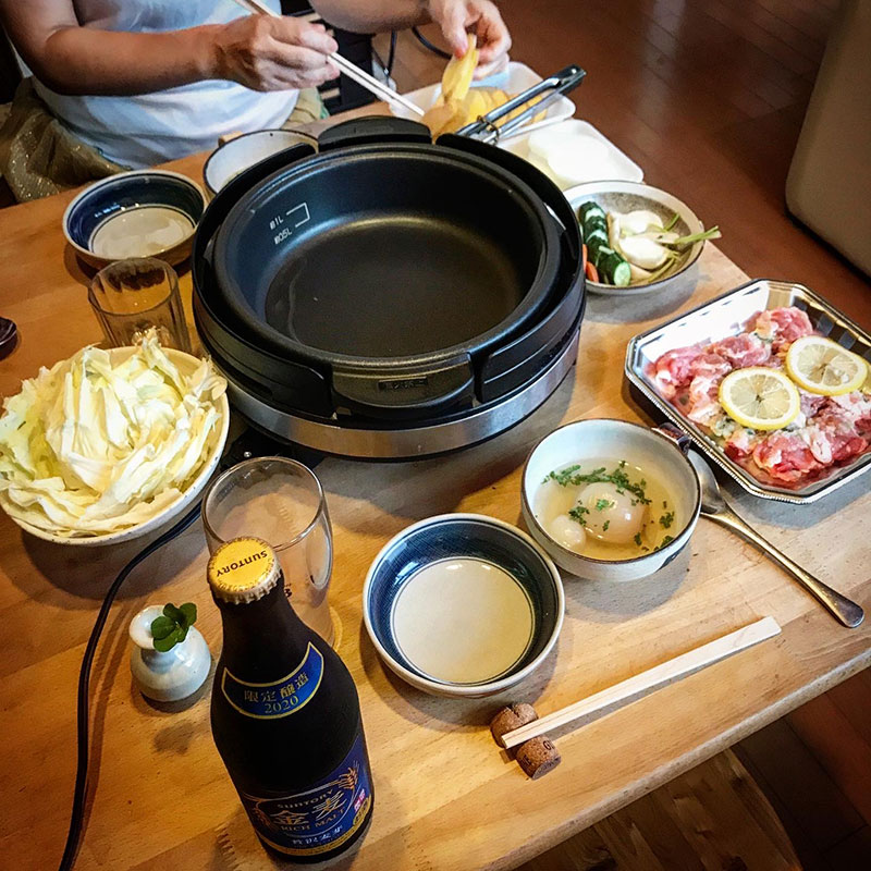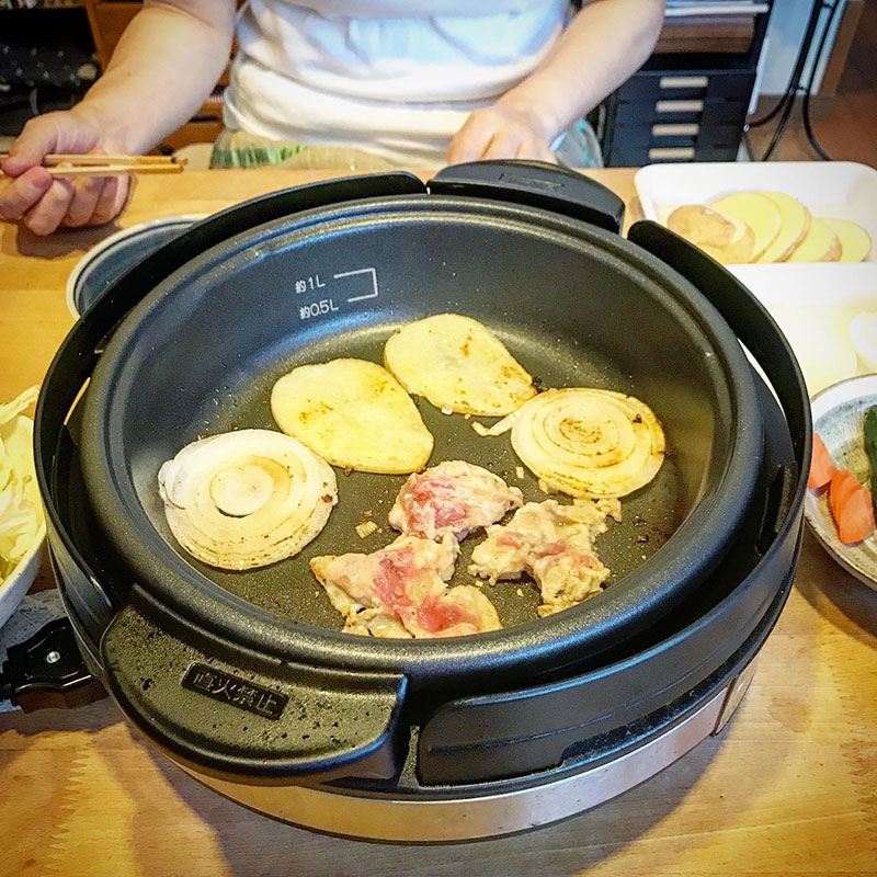 ホットプレートで。