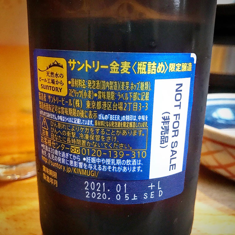 限定醸造の瓶の金麦は非売品。