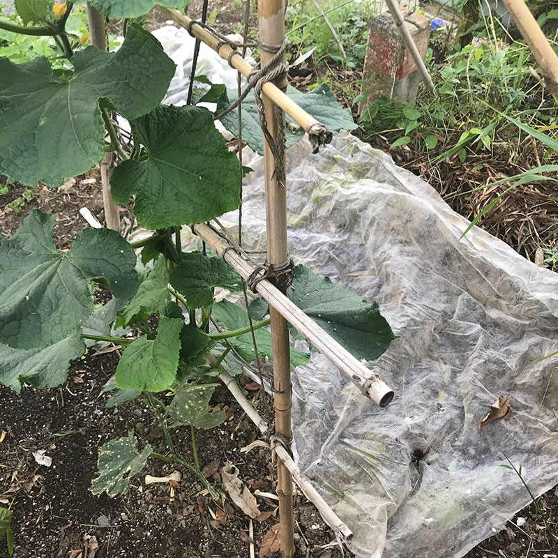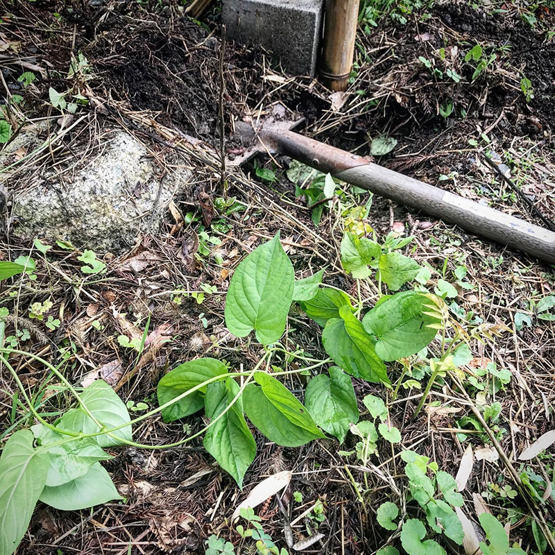 更に今朝、ミニビニールハウスの支柱に巻きついていた蔓草も根を掘り起こして蔓をていねいに外して緑のカーテンの左の竹の支柱下に埋めて蔓を巻きつけてみた。枯れずに一員になってくれると良いのだけど。夏の日差しに緑のカーテンが間に合います様に。