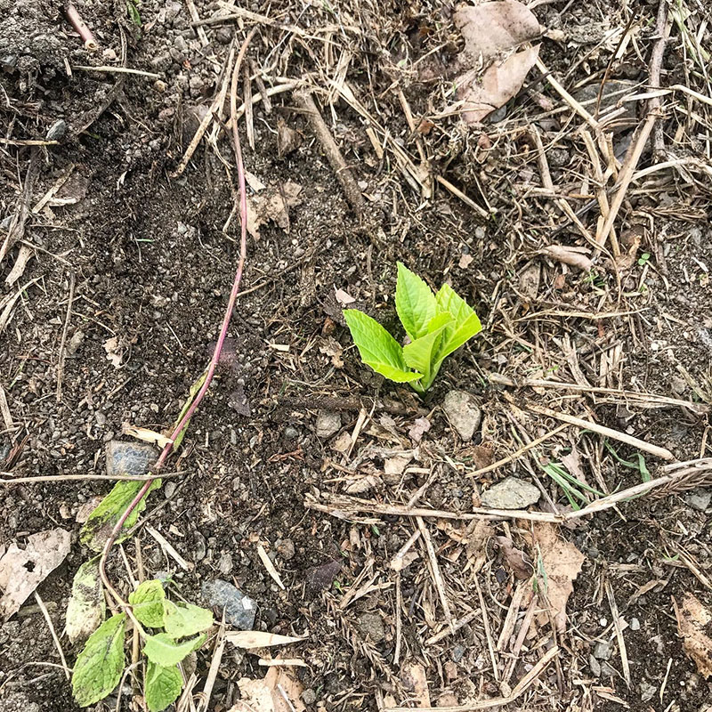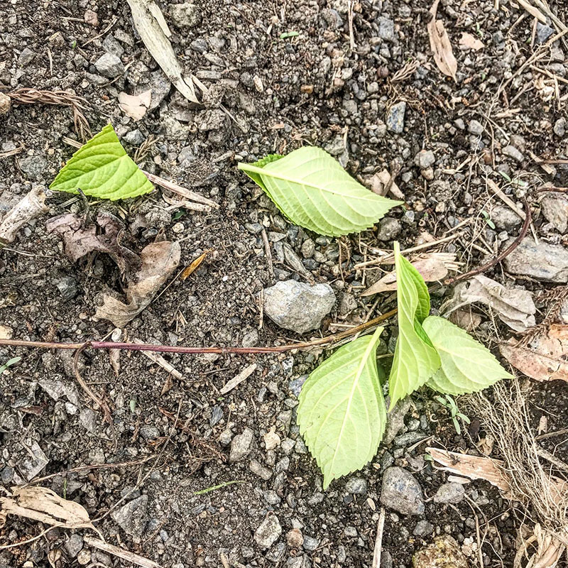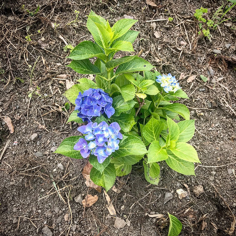 鉢で買ってきておととい家の土手に移植した紫陽花。その後2日間雨が続いたおかげか元気そう。紫陽花は驚くほど水を吸う。